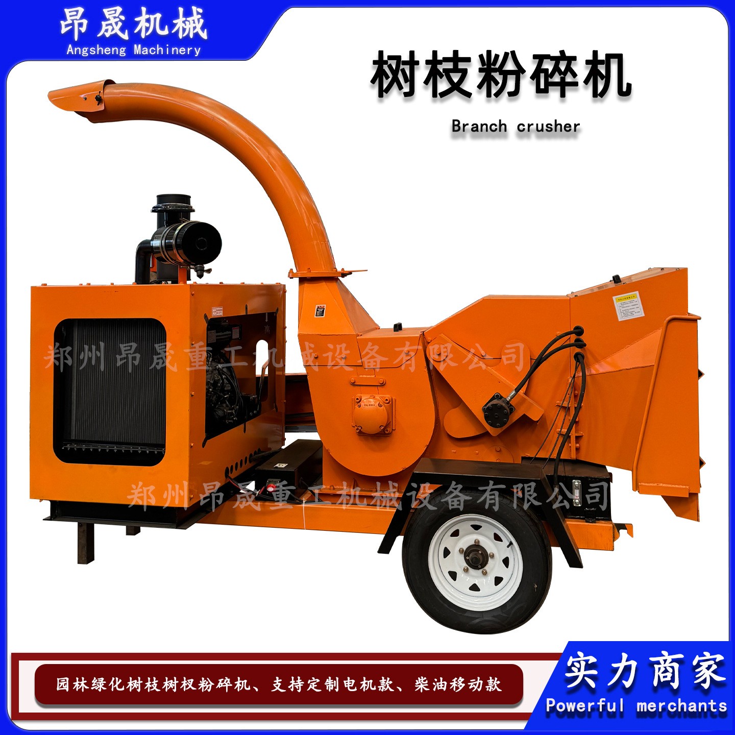 干濕料樹枝樹葉瓜藤破碎機竹子家具板材粉碎機可移動柴油款碎屑機 1臺