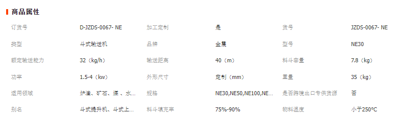 | 大粒度/mm | 物料松散密度(t/m3) | 大提升高度/m | 功率/kw |