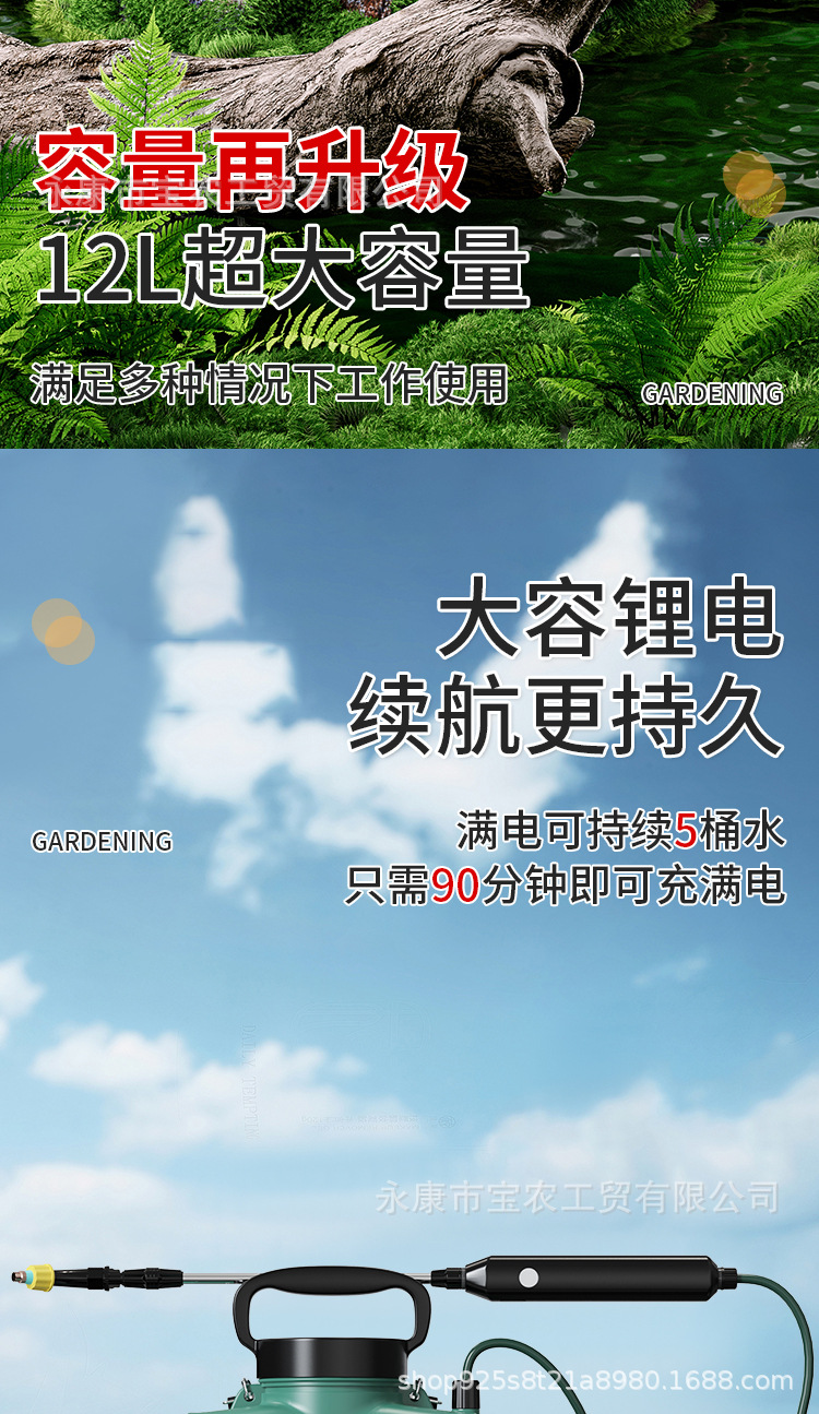 電動噴霧器園藝家庭鋰電池增壓花卉手持噴水槍多功能家用小型噴壺