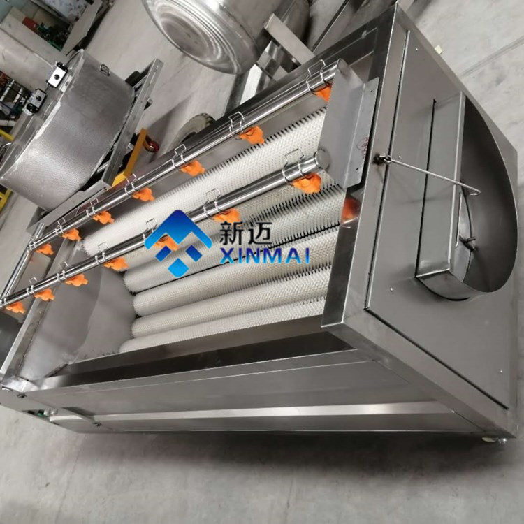 采用不銹鋼SUS304材料制作,符合出口食品衛(wèi)生要求。毛刷清洗機是我公司設計的一款小型的清洗設備,其占地面積的小,清洗效果好,價格低廉,深受廣大客戶的青睞。主要針對塊狀的產(chǎn)品清洗,比如:土豆,胡蘿卜,山芋,馬鈴薯,紅薯,瑪卡等農(nóng)副產(chǎn)品,魚類、扇貝、貝殼類。毛輥清洗機整機采用304不銹鋼焊接而成,美觀大方,設計合理,結(jié)構(gòu)簡單,操作更簡單,便于日常維護。設備主要由框架,噴淋管,毛刷,電器,電機等幾部分組合而成。我公司生產(chǎn)的毛刷清洗機毛刷采用高品質(zhì),實心輥,具有不掉毛,耐磨,穩(wěn)定性強等特點。毛輥清洗機配備8-13根毛輥,常用的是9根毛輥。毛刷分為常規(guī)跟波浪式兩款。根據(jù)產(chǎn)品的特性,配備不同的毛刷款式。毛輥清洗機運轉(zhuǎn)時,產(chǎn)品跟隨毛輥轉(zhuǎn)動。360度的旋轉(zhuǎn),360度的清洗,在毛刷跟產(chǎn)品滾動的同時,噴淋水對產(chǎn)品進行沖刷,保證產(chǎn)品清洗無死角,有效的去除產(chǎn)品表面及夾縫的污垢達到良好的清洗效果。并且節(jié)省水能。毛輥清洗機的雜質(zhì)排出主要原理是噴淋水的沖刷,通過毛輥的運轉(zhuǎn),將清洗下來的雜質(zhì)轉(zhuǎn)送到設備的底部,設備底部設計有回收料斗,將雜質(zhì)進行統(tǒng)一集中排出。清洗效率,為企業(yè)降低產(chǎn)品的生產(chǎn)成本。目前常規(guī)生產(chǎn)的型號有:1000型,1500型,1800型,三款型號,是我公司吸取了國內(nèi)外對瓜果加工機械的特點,取其優(yōu)點設計制作。簡單,耗能低,占地小,效率高是它具有的特點。