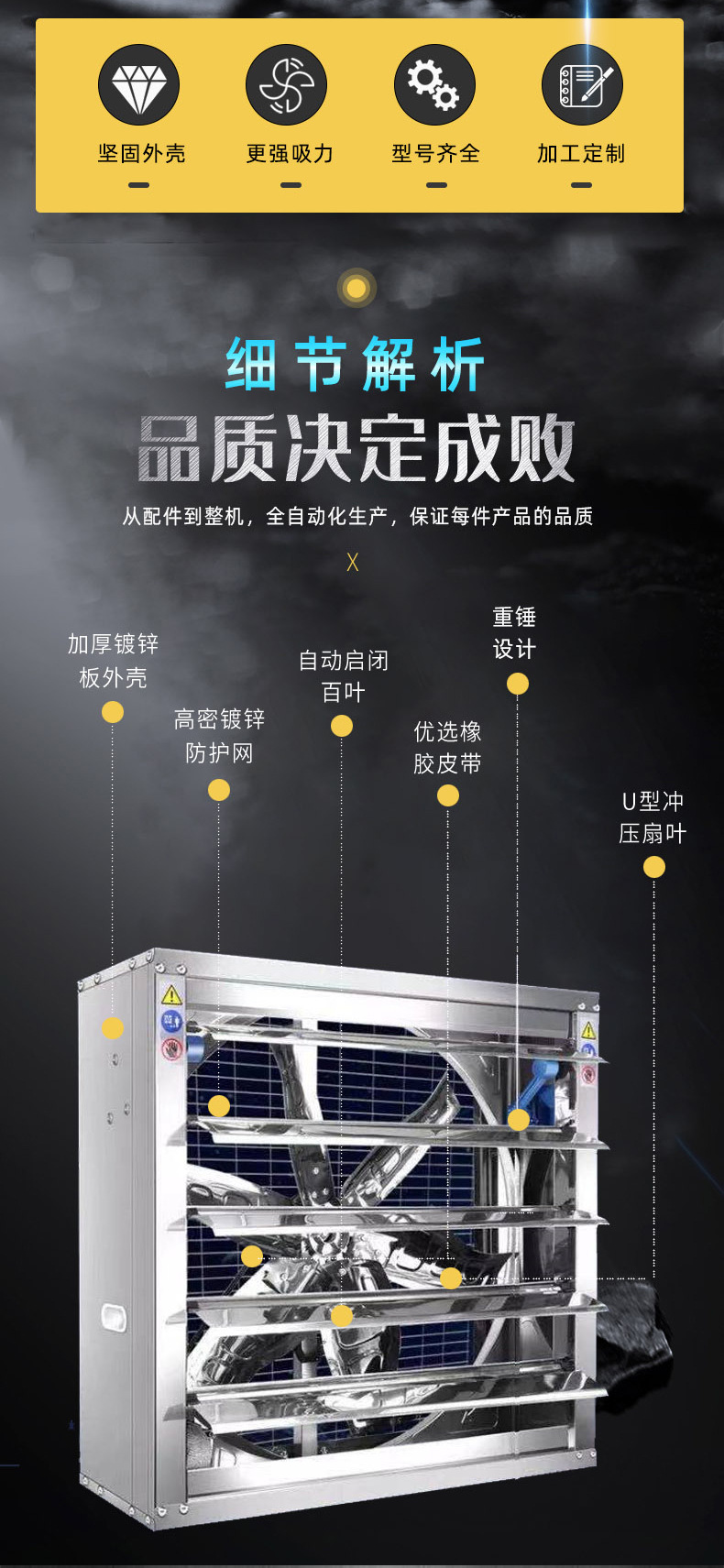 大型工業換氣扇 防爆排風扇 重錘式1380型直驅式負壓風機