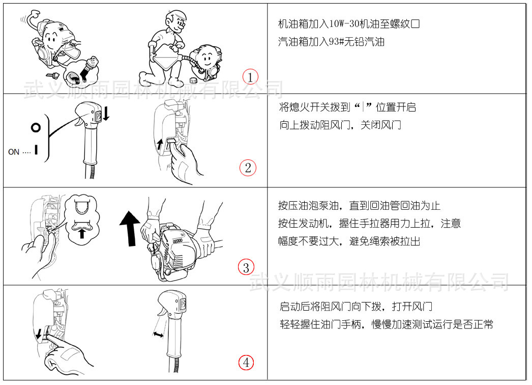 四沖程割草機(jī)啟動(dòng)方式: