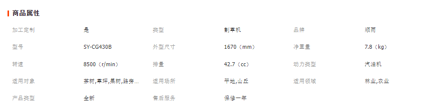 產品參數:側掛式割灌機/割草機SY-CG430B款