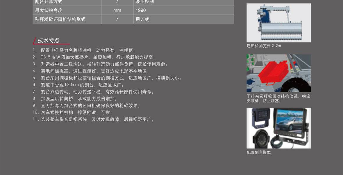 √ 割臺雙邊傳動,動力傳遞平穩,能有效延長部件使用壽命。