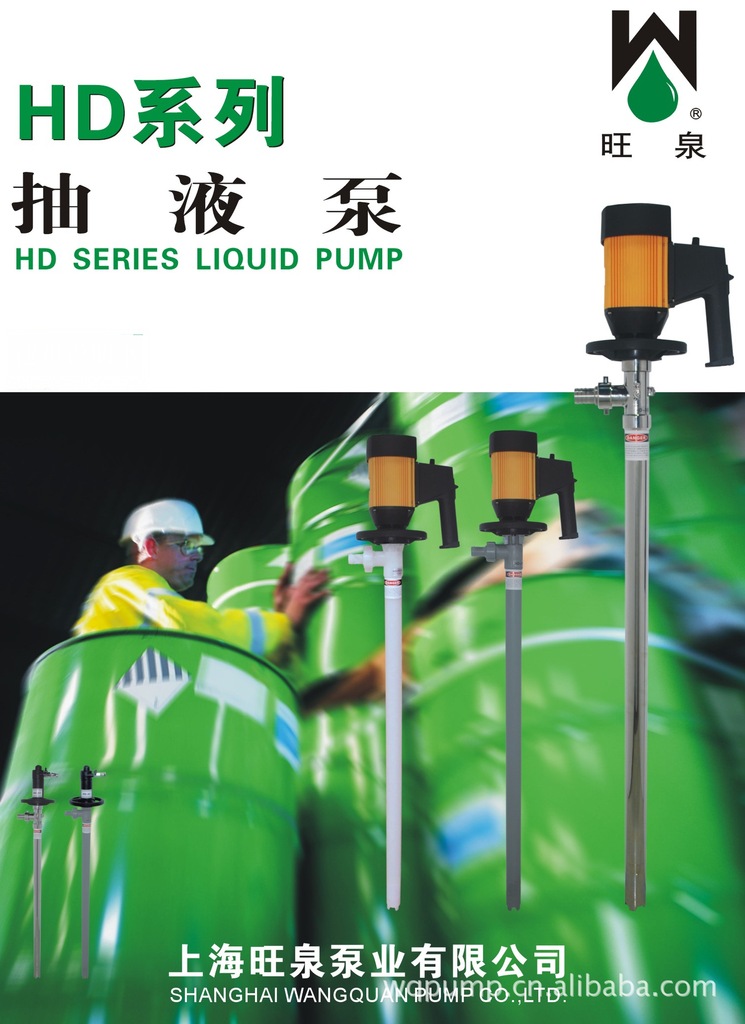 上海旺泉HD系列耐腐蝕插桶泵、桶裝手提式泵浦、手提桶泵、氣動(dòng)、電動(dòng)抽液泵、調(diào)速油桶泵、螺桿式插桶泵、電動(dòng)高粘度抽桶泵