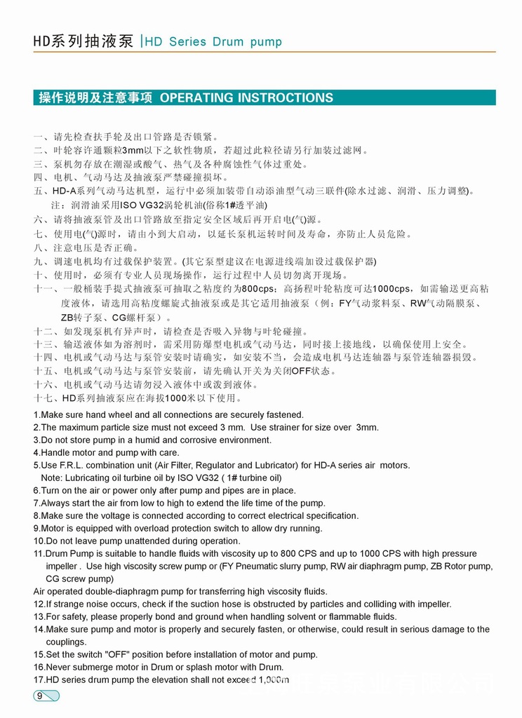 WANGQUAN HD插桶泵產(chǎn)品特點(diǎn):