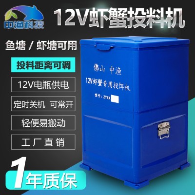 12V蝦塘投料機蟹塘自動投餌機可接電瓶魚塘投飼機