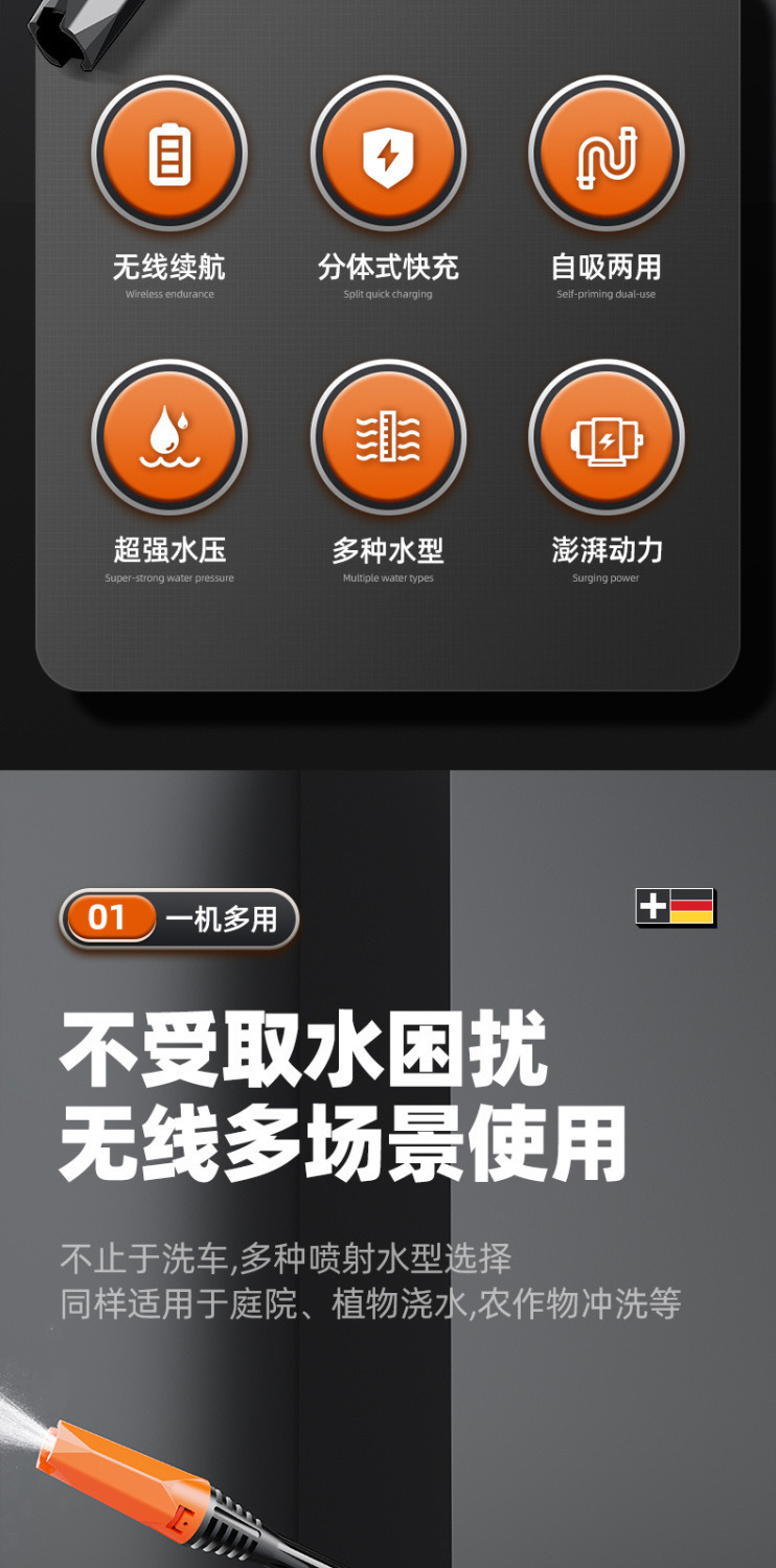 無線洗車機車用家用便攜式充電高壓水槍鋰電池水泵刷車搶清洗神器