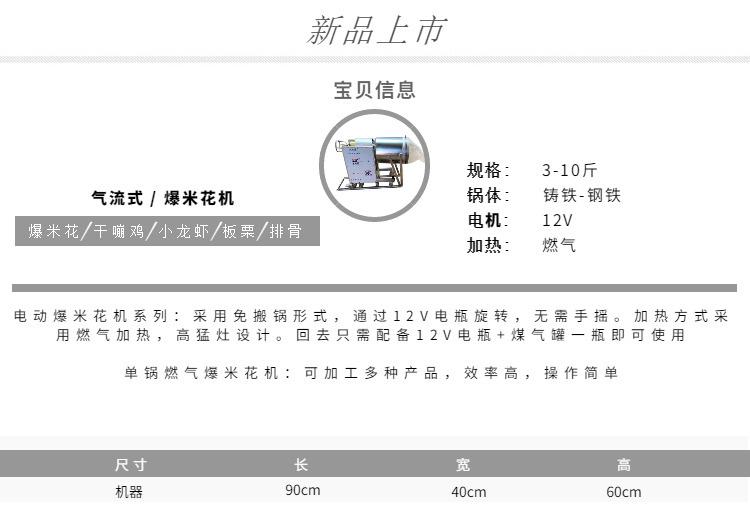 詳細(xì)信息 商品屬性 訂貨號(hào)12358 加工定制是 貨號(hào)12358 種類膨化機(jī) 產(chǎn)品別名干嘣雞 品牌新星 型號(hào)3斤 電壓12(V) 功率1.1(kw) 產(chǎn)品用途爆雞塊 排骨 板栗 花生等 外形尺寸1100*850*800(mm) 凈重100(kg) 包裝紙箱 適用范圍休閑食品廠設(shè)備 營銷新品 售后服務(wù)一年 規(guī)格3斤雙鍋,5斤雙鍋,定金 是否跨境出口專供貨源否
