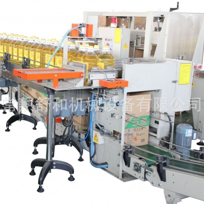 4、通過落箱緩沖裝置實現(xiàn)柔性落箱,裝箱后有震動壓包裝置,使箱子內(nèi)的產(chǎn)品更加平整;