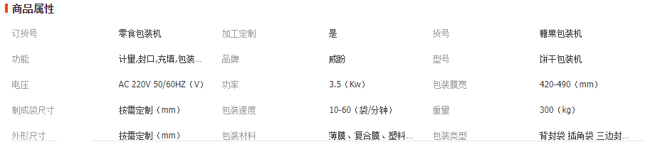 威盼全自動(dòng)顆粒包裝機(jī),采用多頭電腦組合秤的設(shè)計(jì),具有計(jì)量精準(zhǔn),包裝速度快的優(yōu)勢(shì),并且選取食品級(jí)不銹鋼材質(zhì),可與食物直接接觸,安全衛(wèi)生,便于清洗。適用于糖果、餅干、堅(jiān)果、果干、膨化食品、冷凍食品、寵物食品等多種顆粒狀物料包裝。(可跟客服獲取包裝案例視頻,或者與專(zhuān)業(yè)人員聯(lián)系:劉經(jīng)理—13928569290 )