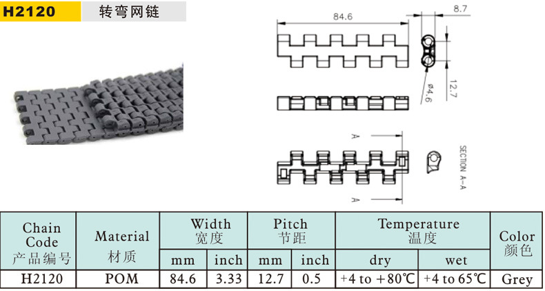 食品機械加工設備輸送機配件 鏈塑鋼工業皮帶 POM全寬轉彎網鏈