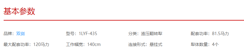 雙劍1LYF-435液壓翻轉犁技術參數