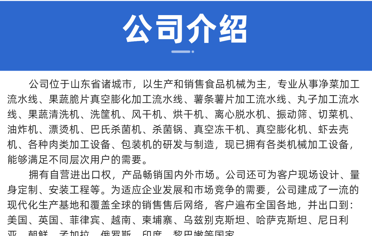 主營: 果蔬加工設備