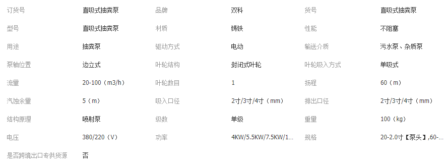 雙科新款直吸直排吸糞泵鄉(xiāng)村養(yǎng)殖場(chǎng)專用排污泵高揚(yáng)程化糞池抽糞泵
