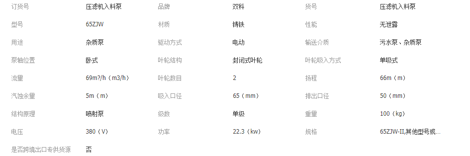 雙科專供壓濾機入料泵 ZJW型入料加壓雜質泵 洗煤機耐酸堿渣漿泵