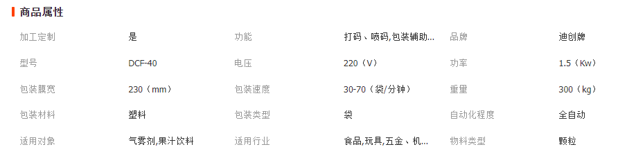 主要參數:機器資料,參數只供參考,以實物為準。 型 號DCK-60制袋尺寸長:30-180mm 寬:30-140mm包裝速度30-80袋/分計算范圍5-150ml電 源220v 50Hz 1.9kw整機重量350kg外形尺寸900x700x1700mm備 注大袋包裝可定制 |