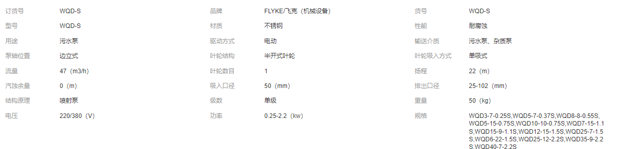 飛克定制304/316全不銹鋼污水污物潛水泵耐酸堿耐高溫化工污水泵
