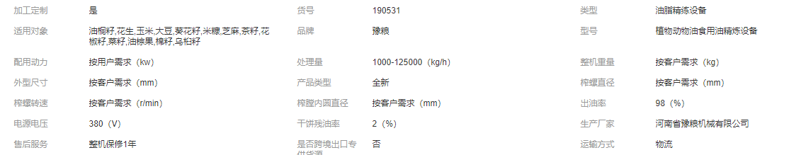 (4)米糠油產(chǎn)品可達(dá)到中華人民共和國(guó)國(guó)標(biāo)一級(jí)油的標(biāo)準(zhǔn)。