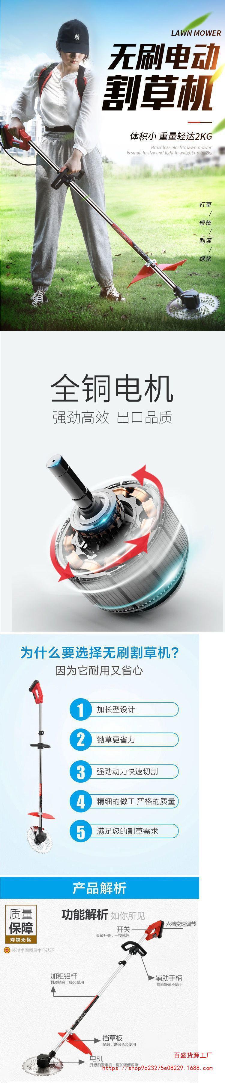 邁越充電式無刷電動割草機小型背負式除草機打草機家用草坪剪批發(fā)