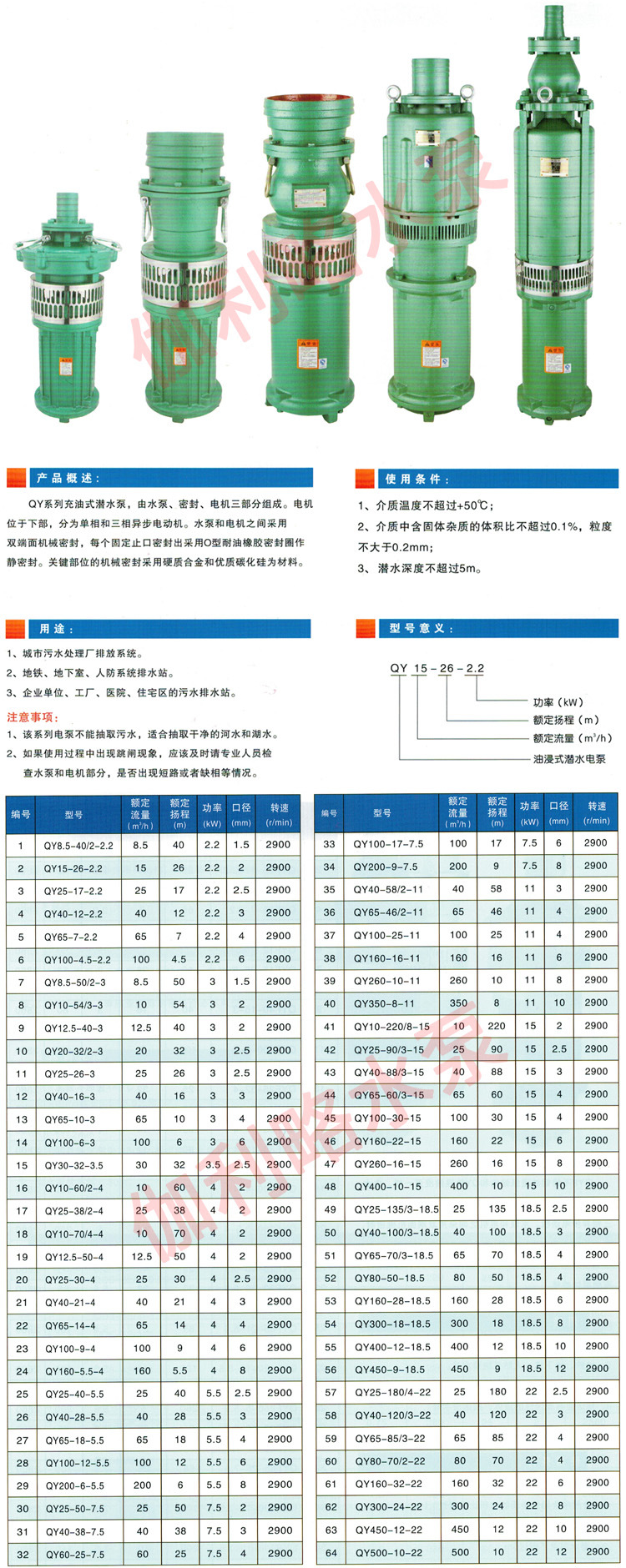 QY深井潛水小型油浸三相充油式浸式潛水電泵 伽利略品牌