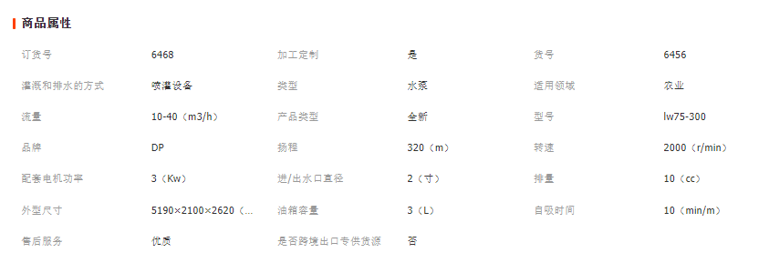 lw75-300卷盤式噴灌機性能參數表: