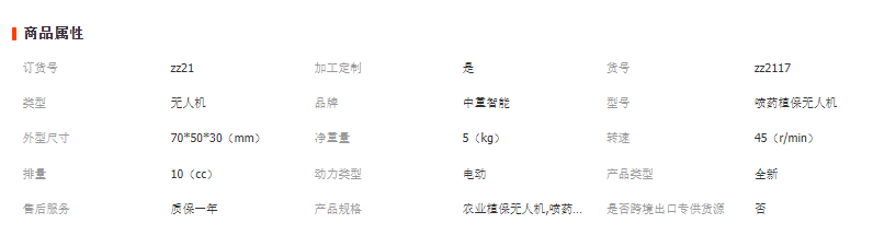 植保無人機產品參數: