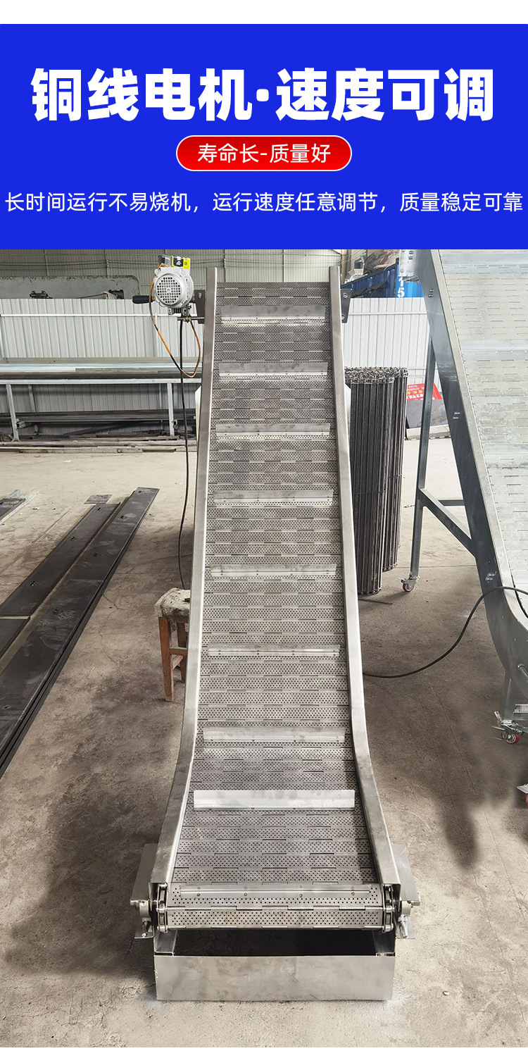 不銹鋼鏈板輸送機耐高溫果蔬風干傳送機大間距平頂L鏈板輸送機