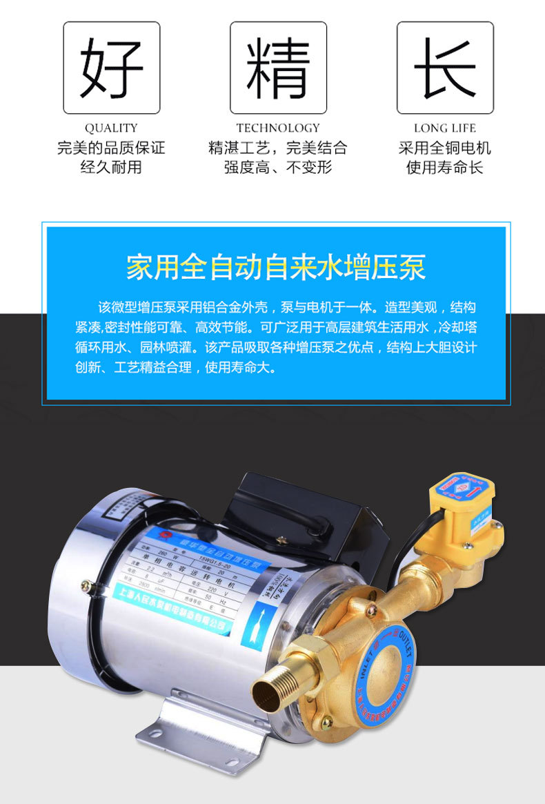 德濤家用全自動增壓泵 靜音不銹鋼增壓泵 管道太陽能熱水器加壓泵