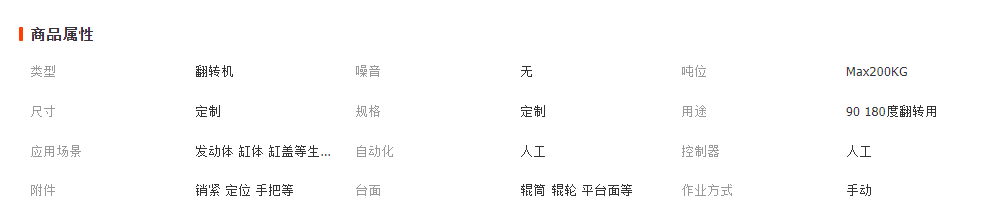 此翻轉(zhuǎn)架適用于發(fā)動機缸體、缸蓋生產(chǎn)線上對缸體、缸蓋的檢測、加工、清洗等場合。