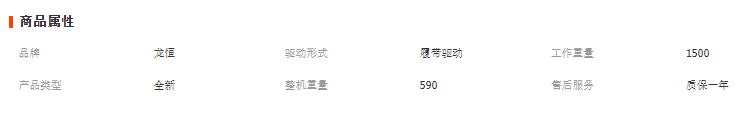 最高行走速度 | 15公里/小時 | 履帶(型號) | 180*72*38 |