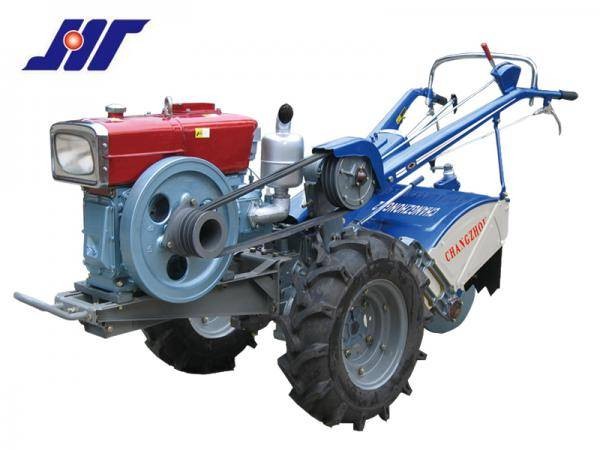 CZ-12、CZ-15型手扶拖拉機為牽引、驅動兼用型拖拉機,結構緊湊、耐用可靠、操作靈活、馬力大。重輕,通過性好,并備有乘座裝置。適用于水田、旱田以及果園、菜園和丘陵地的耕作,配上相應的農機具及附件可以進行犁耕、旋耕、耙田、開溝、播種、收割、運輸和其他作業,還可作為排灌、噴灌、脫粒、磨粉、飼料加工等固定作業之動力。