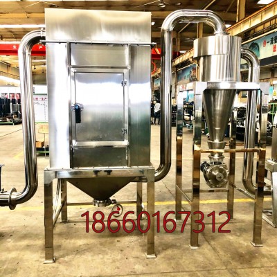 2.本機采用全不銹鋼結構,本機物料接觸部分304不銹鋼,符合食品衛生要求。粉碎腔內壁經過鈑金加工,粉碎腔內壁光滑,不藏粉,容易清理。設備采用雙轉子盤結構,較傳統機型相比,粉碎效率高,粉碎細度均勻;本機轉子盤經過動平衡儀調整,設備運行平穩,噪音。本機細度通過篩網控制,篩網調換方便。