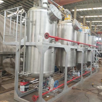 食用油精煉設備采用間歇式煉油工藝。工藝分4個工段:脫膠工段;脫酸工段;脫色工段;脫臭工段。可以白天工作,夜晚停的狀態,操作容易上手。