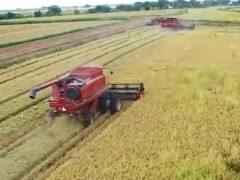 航拍美國一個農場2018年的水稻收割作業