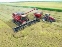 航拍美國一個農場2018年的水稻收割作業